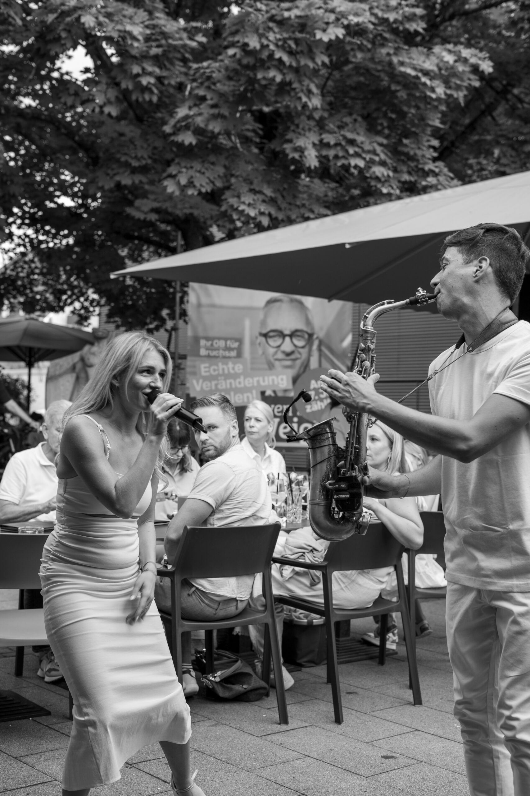 Mit Stil, Ausstrahlung und viel Liebe zum Detail machen wir dein Event zu einem unvergesslichen Erlebnis. Unsere erfahrenen Musiker:innen überzeugen nicht nur mit musikalischer Qualität, sondern auch mit einem eindrucksvollen Bühnenauftritt.